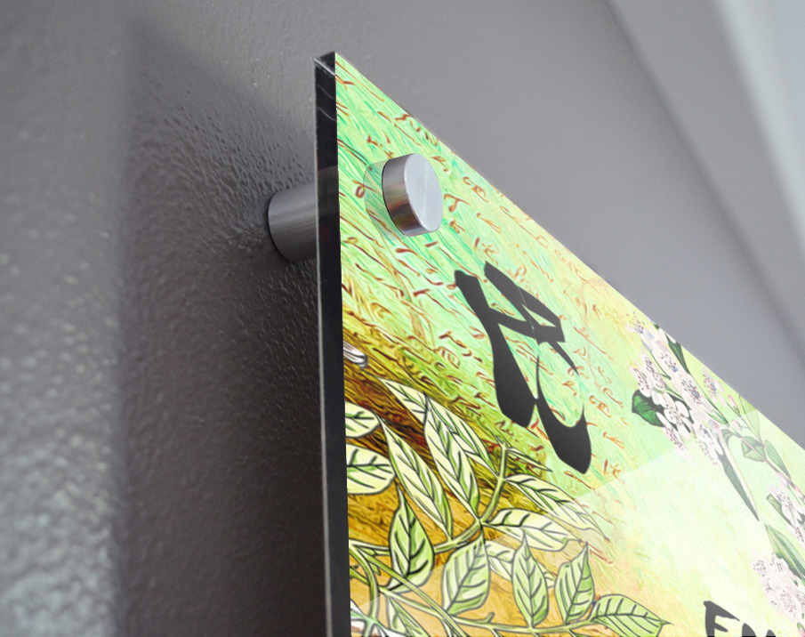 Printed to the edge - Ready to hang - provided with 4 premium polished aluminum stand off ( wall screws and mounting hardware provided )