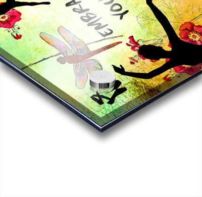Printed to the edge - Ready to hang - provided with 4 premium polished aluminum stand off ( wall screws and mounting hardware provided )