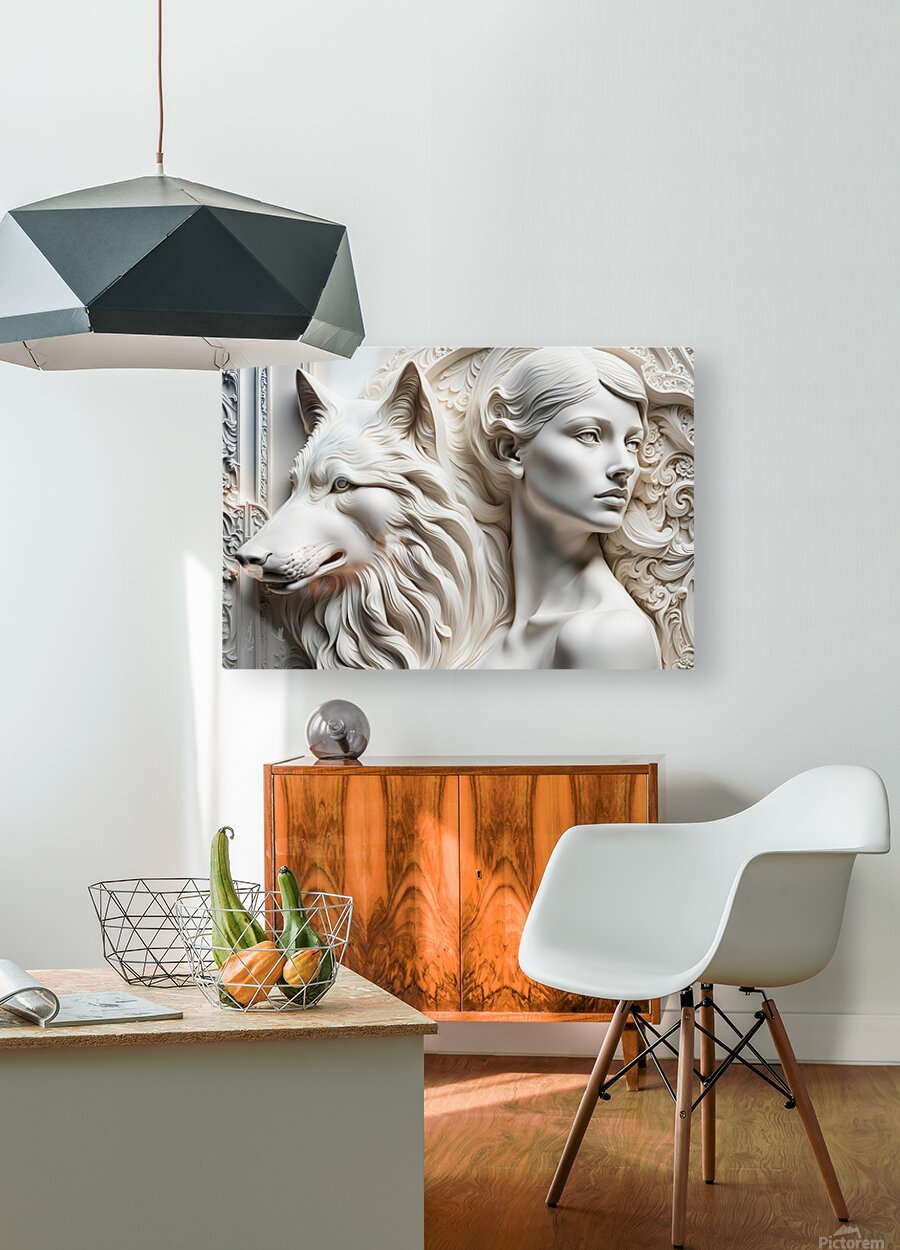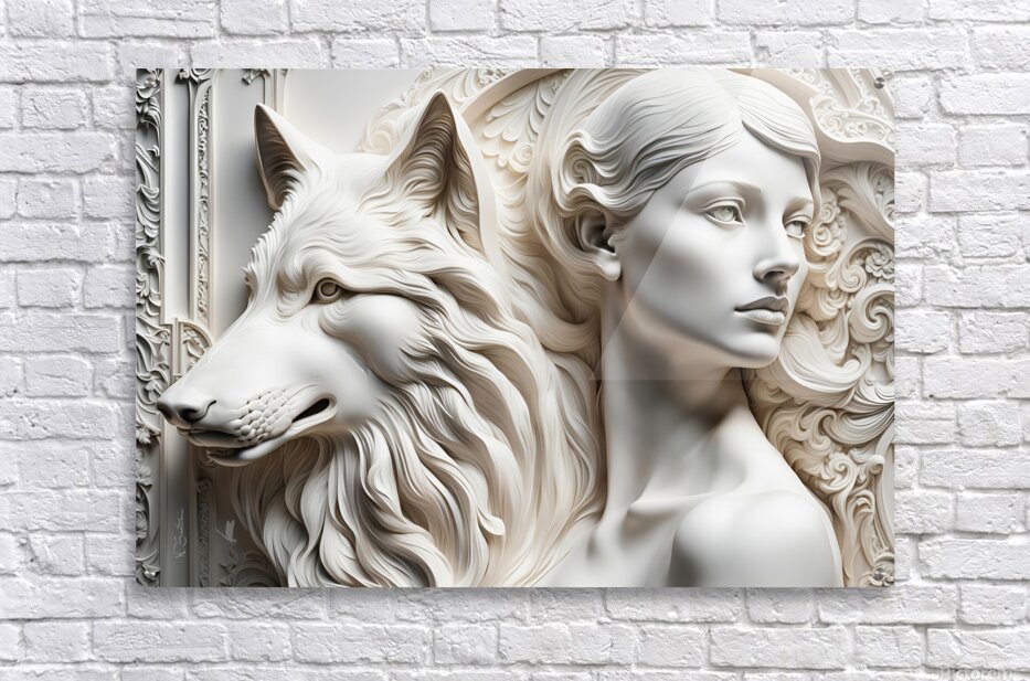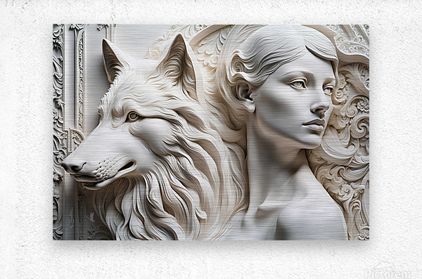 Woman with wolf  decorative relief sculpture  3d wall art print by Nazan Saatci Art HD Sublimation Metal print