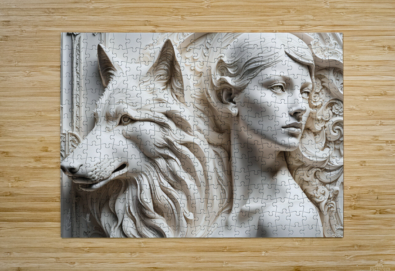 Woman with wolf  decorative relief sculpture  3d wall art print by Nazan Saatci Art Nazan Saatci Puzzle printing