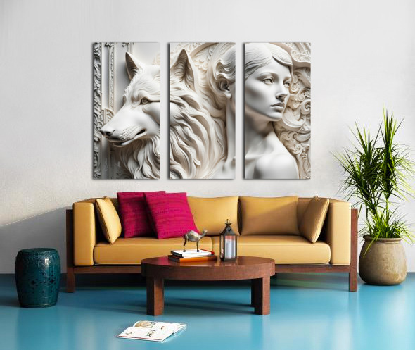 Woman with wolf  decorative relief sculpture  3d wall art print by Nazan Saatci Art Picture Frame Printing