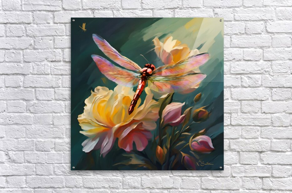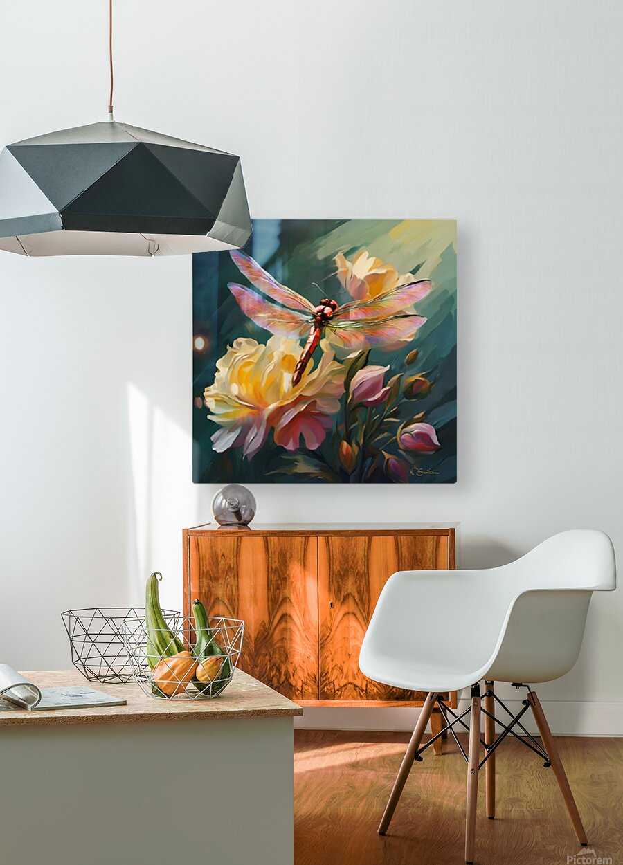 Dragonfly and Roses  wall art by Nazan Saatci Art  HD Metal print with Floating Frame on Back