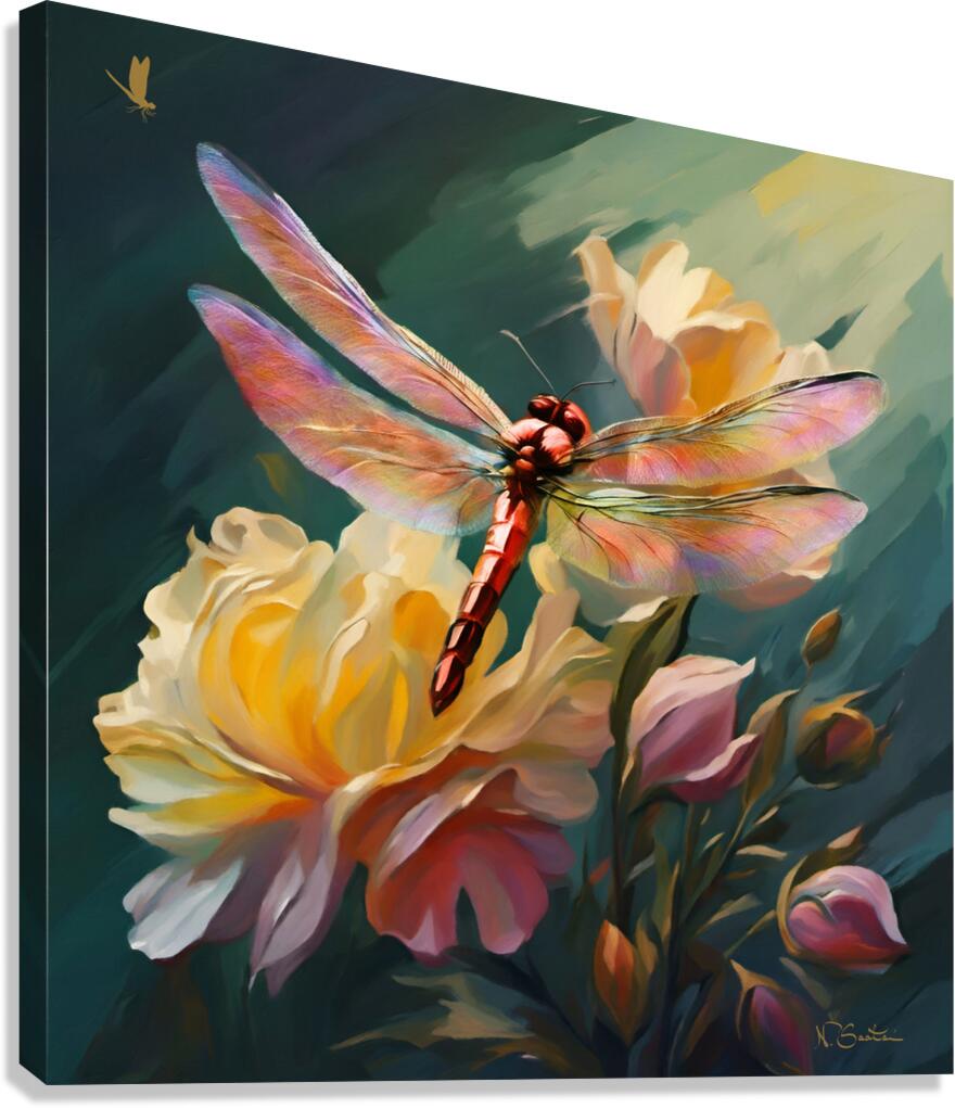 Get this artwork "Dragonfly and Roses wall art by Nazan Saatci Art" in a framed print.