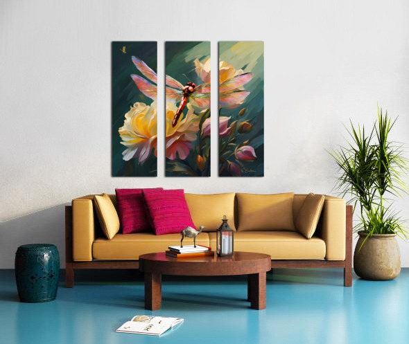 DRAGONFLY AND ROSES WALL ART BY NAZAN SAATCI ART