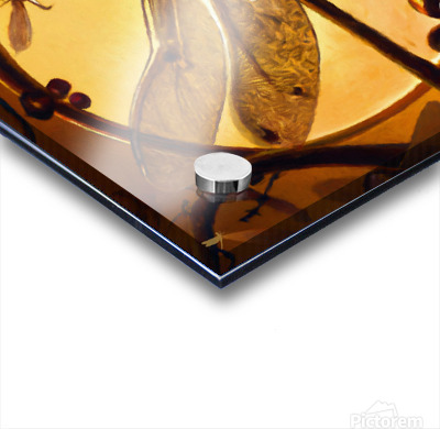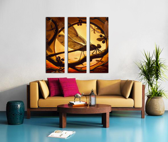 This canvas art by Nazan Saatci showcases the mesmerizing beauty of a dragonfly at sunset. The scene portrays a dragonfly sitting on a twig, with its ...[+]