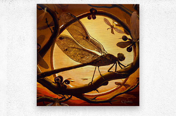 Dragonfly at Sunset Wall art by Nazan Saatci art Metal print