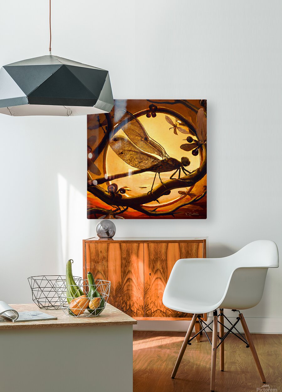 Dragonfly at Sunset Wall art by Nazan Saatci art HD Sublimation Metal print