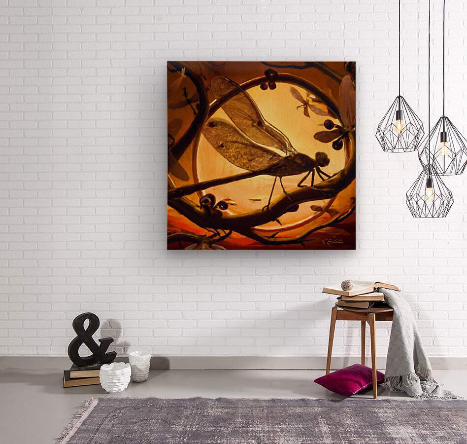 Dragonfly at Sunset Wall art by Nazan Saatci art Wood print