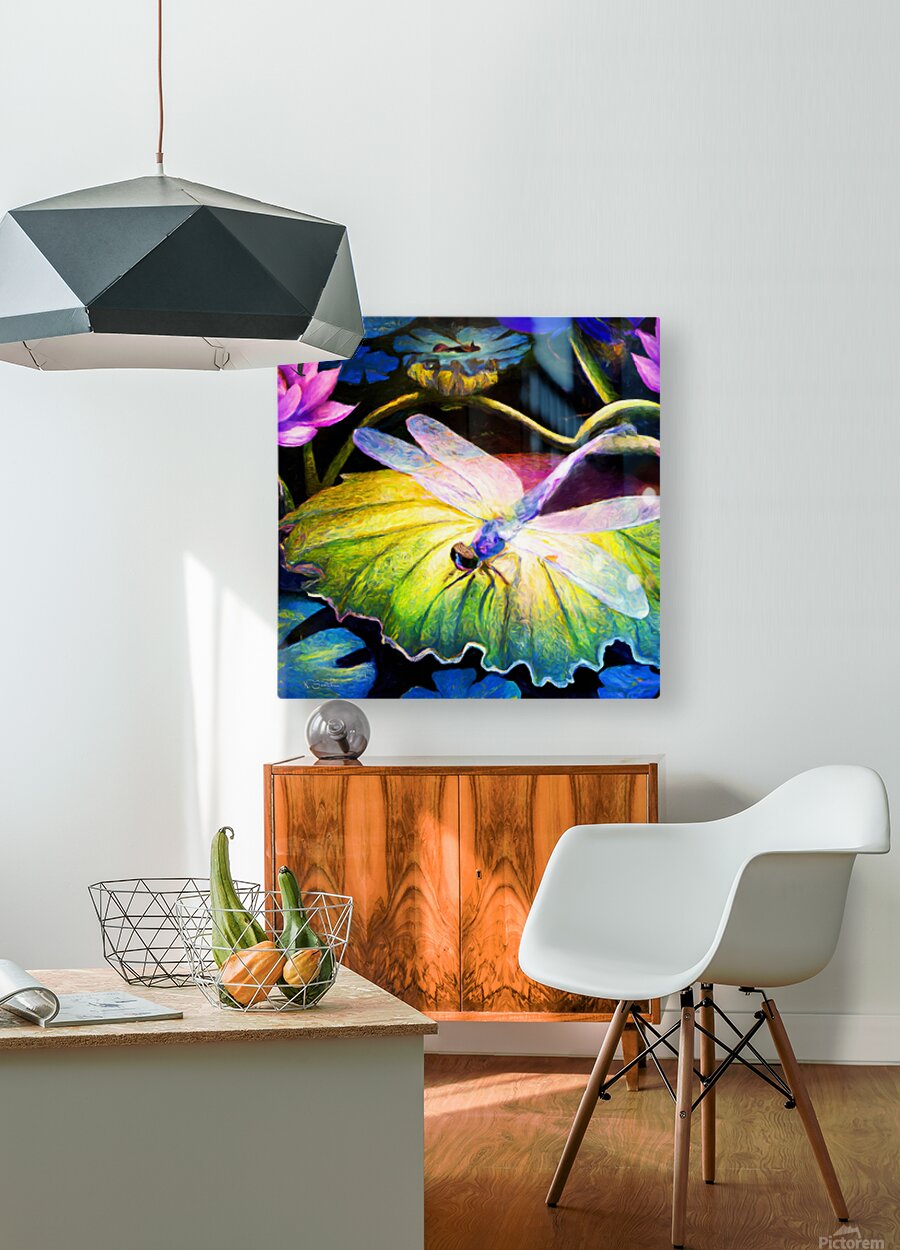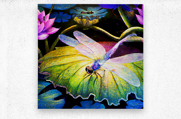 Dragonfly  on a waterlily pad  wall art by Nazan Saatci art Impression metal