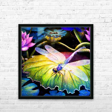 SUR CETTE OEUVRE: DRAGONFLY ON A WATERLILY PAD WALL ART BY NAZAN SAATCI ART